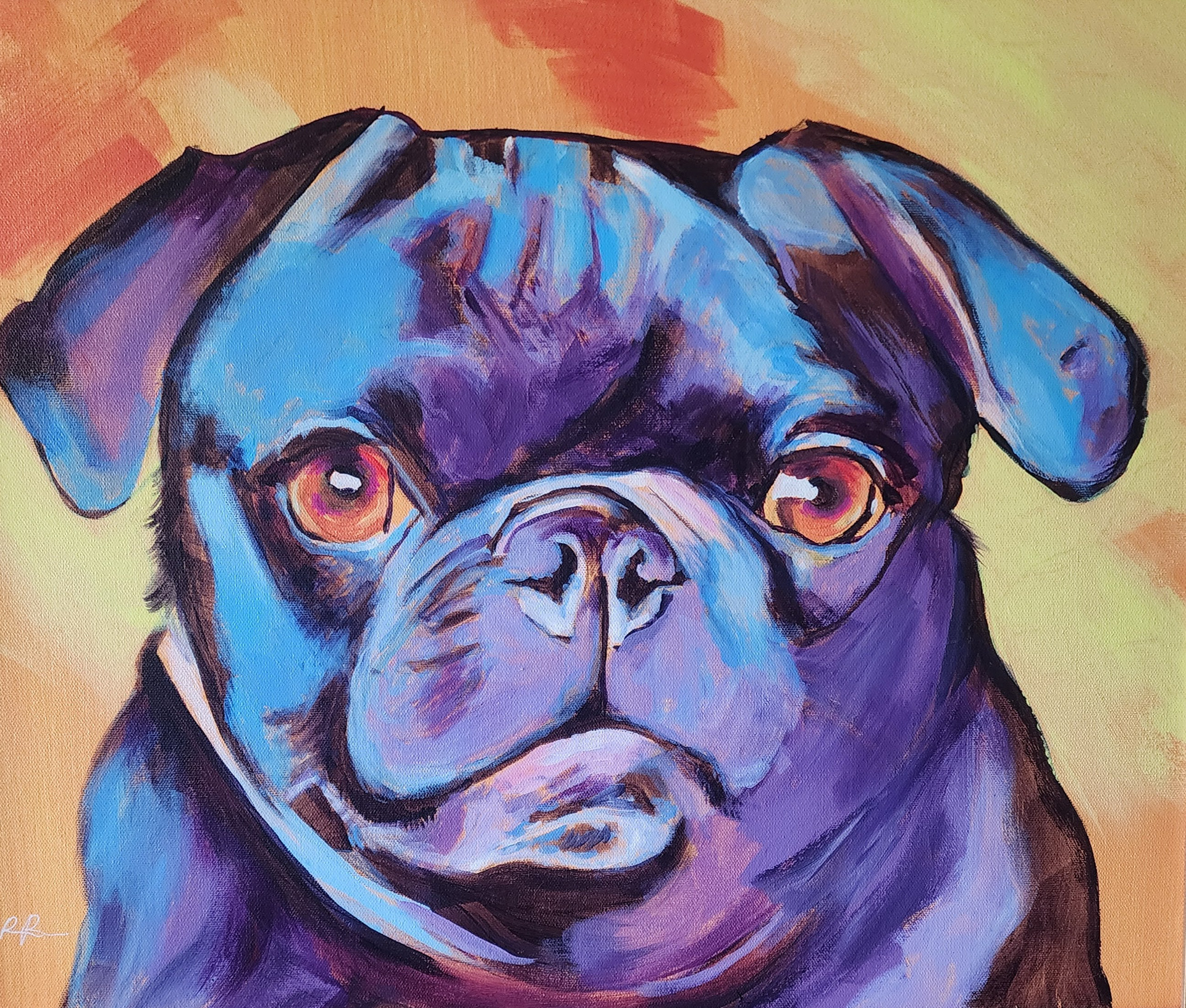 "Electric Pug" acrylic on stretched canvas. 20"x 24"